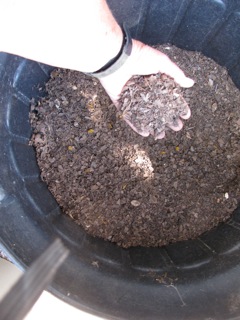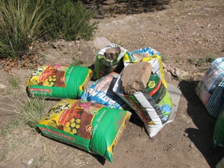 After about 3 years in a pile the Sycamore leaves are crushed down. Again I sieve them into a wheelbarrow. (At this point they make a mulch to keep moisture in flower beds) I add an equal amount of sieved soil from under our trees which include the needles from the Junipers. And I add a small amount of nitrogen. Mix it all together and shovel it into used plastic bags from commercial products. Add water and leave sit in the sun about 2 months, turning several times. Beautiful, enriched soil is the result. I have leaves t